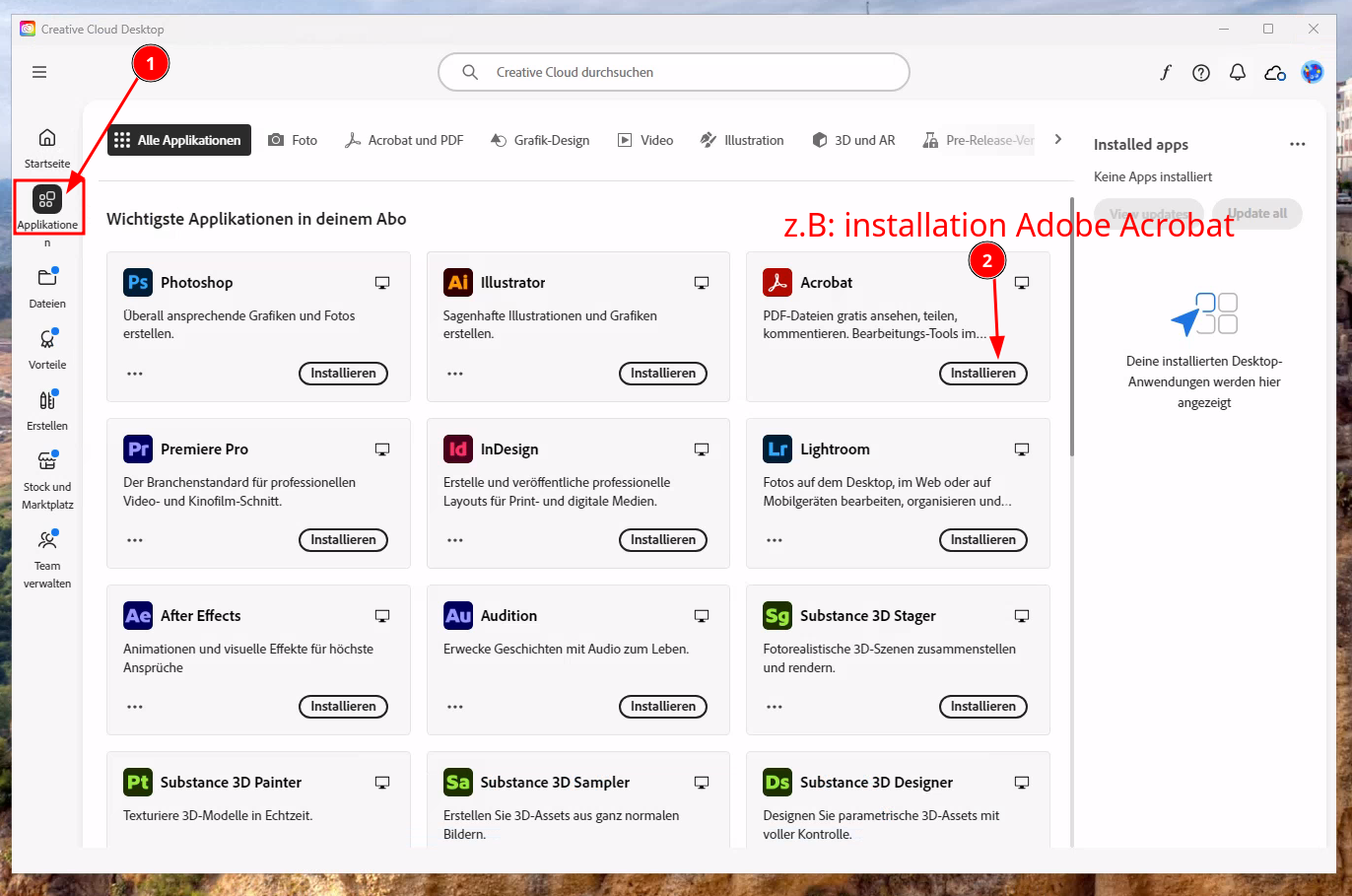 4. Das Adobe Programm installieren das man verwenden möchte. In diesem Fall Adobe Acrobat für das bearbeiten von PDF's.