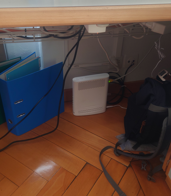 Das Modem befindet sich im Zimmer 23 (Bei S. Dommen) in der Ecke hinter dem Schreibtisch.