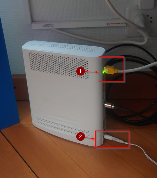 - Modem, Netzwerkkabel anschliessen: Markierung 1