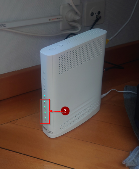 - Modem, Warten bis die untersten 4 LED leuchten: Markierung 3