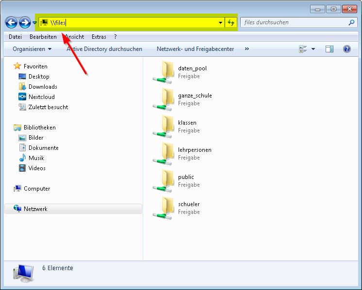 Auf den Schulserver kann man sich, innerhalb des Schulnetzwerks, direkt über folgende Adresse verbinden: \\files